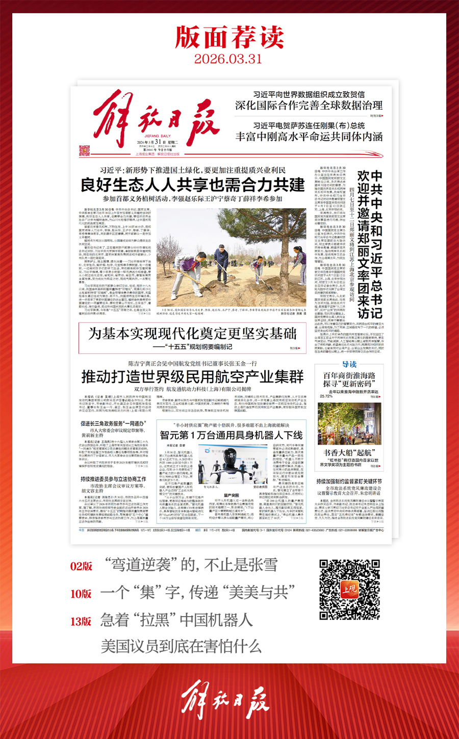早上好!上观新闻『早读』来啦!今天是2026年3月31日星期二,农历二月十三。