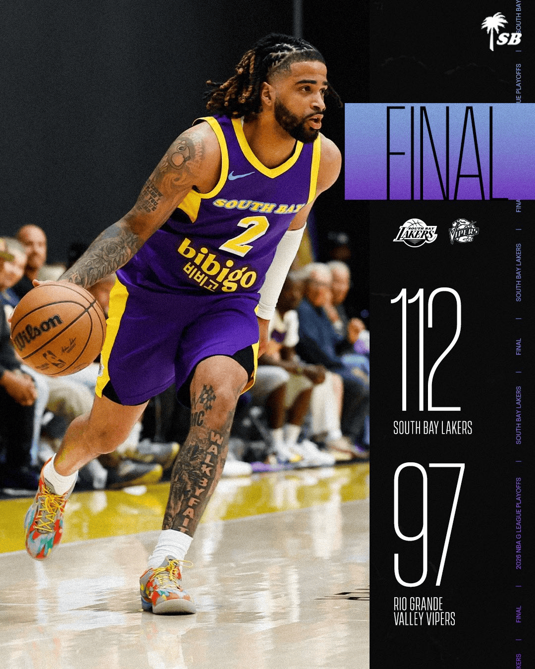 虎扑04月04日讯 今日NBA G联赛季后赛,南湾湖人112-97战胜里奥格兰德河谷。