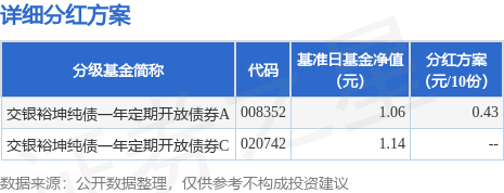 本站消息,9月22日发布《交银施罗德基金管理有限公司关于交银施罗德裕坤纯债一年定期开放债券型发起式证券投资基金分红公告》。本次分红为2025年度的第2次分红。公告显示,本次分红的收益分配基准日为9月9日,详细分红方案如下:
